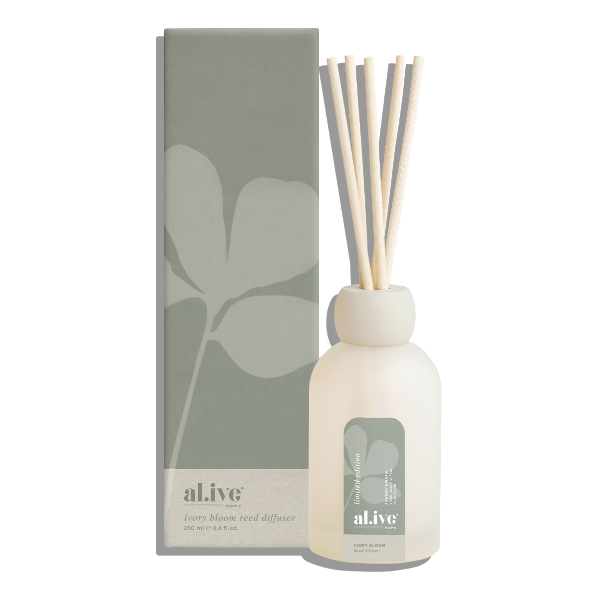 The Ivory Bloom Reed Diffuser brings a sense of stillness and calm through a limited edition scent inspired by white florals.