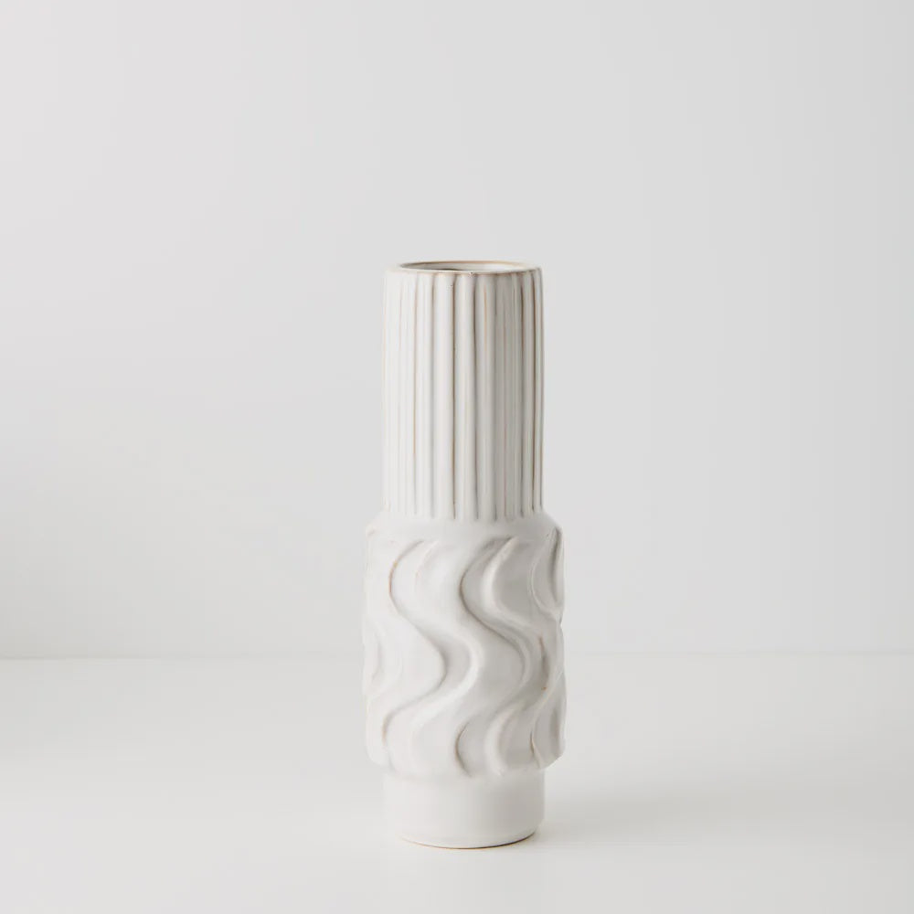Introducing the Vase Jadelo in white, a striking piece of geometric elegance. Tall and thin, its intricate pattern adds a touch of sophistication to any space. Crafted to enhance floral arrangements or stand alone as a statement piece, the Vase Jadelo exudes timeless charm and contemporary style.